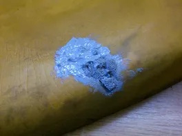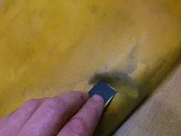 Reparaturstelle säubern mit etwas grobem Schleifleinen: