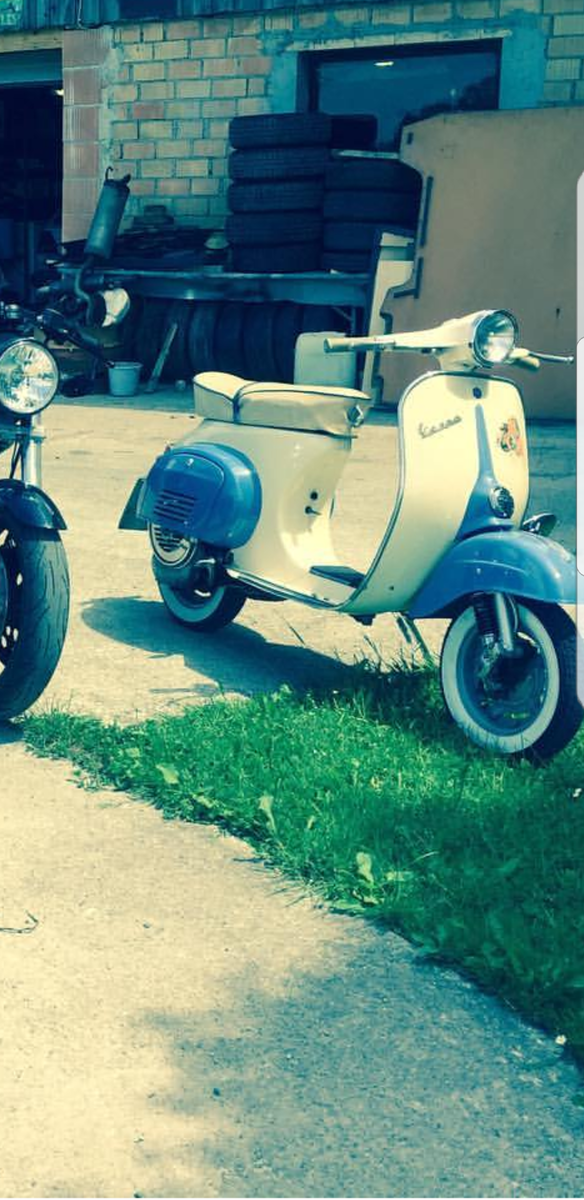 Die VBB habe ich damals im Frankreich gekauft von einem Pakistani der hat die von seiner Heimat mitgebracht. Nach dem Sandstrahlen von der VBB war nicht mehr so viel gutes übrig. Und für mich hat sich zwei Jahre die Frage ob es sich lohn die noch zum richten. Als ich dann über meinen Vater an einen guten Karosserie Spengler gekommen bin hat der mir die in 100 stunden wieder zu einen Sahnestück gemacht. Aktuell sind alle teile schon mit Klarlack lackiert. Ein Motor von einer Vespa Sprint mit 10 Zoll Bremsen wird gerade überholt und eine Passende Gabel mit 10 Zoll Bremse vorn ist schon eingebaut. Bilder folgen.......