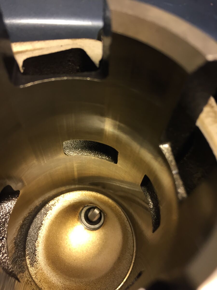 Die vom Ringfragment geschrappte Vorverdichterfläche sieht so aus, als ob man den Motor auf einen Membranstutzen umbauen sollte. Ich seh's von hier aus nicht gut, also hängt mich nicht.
