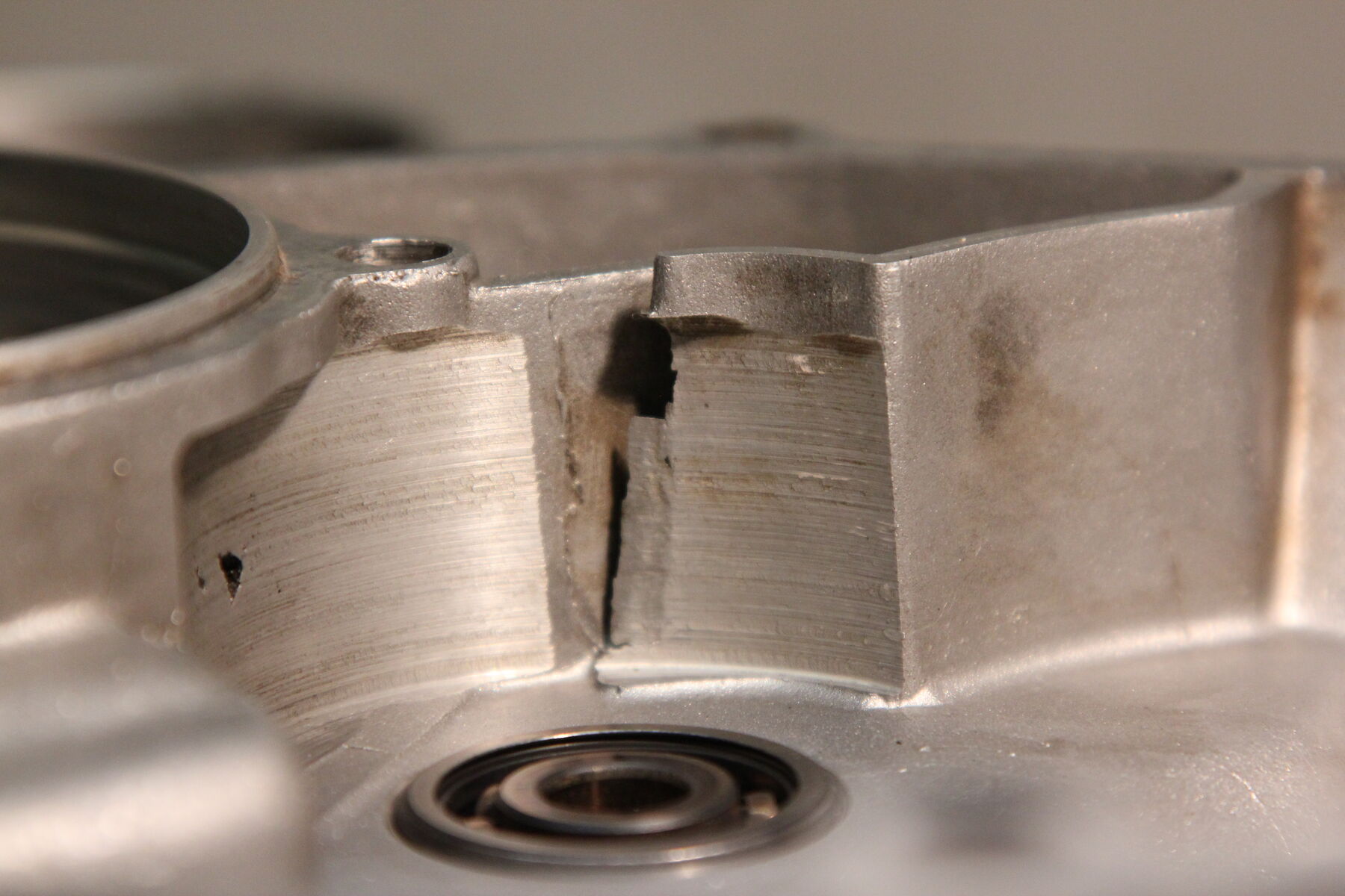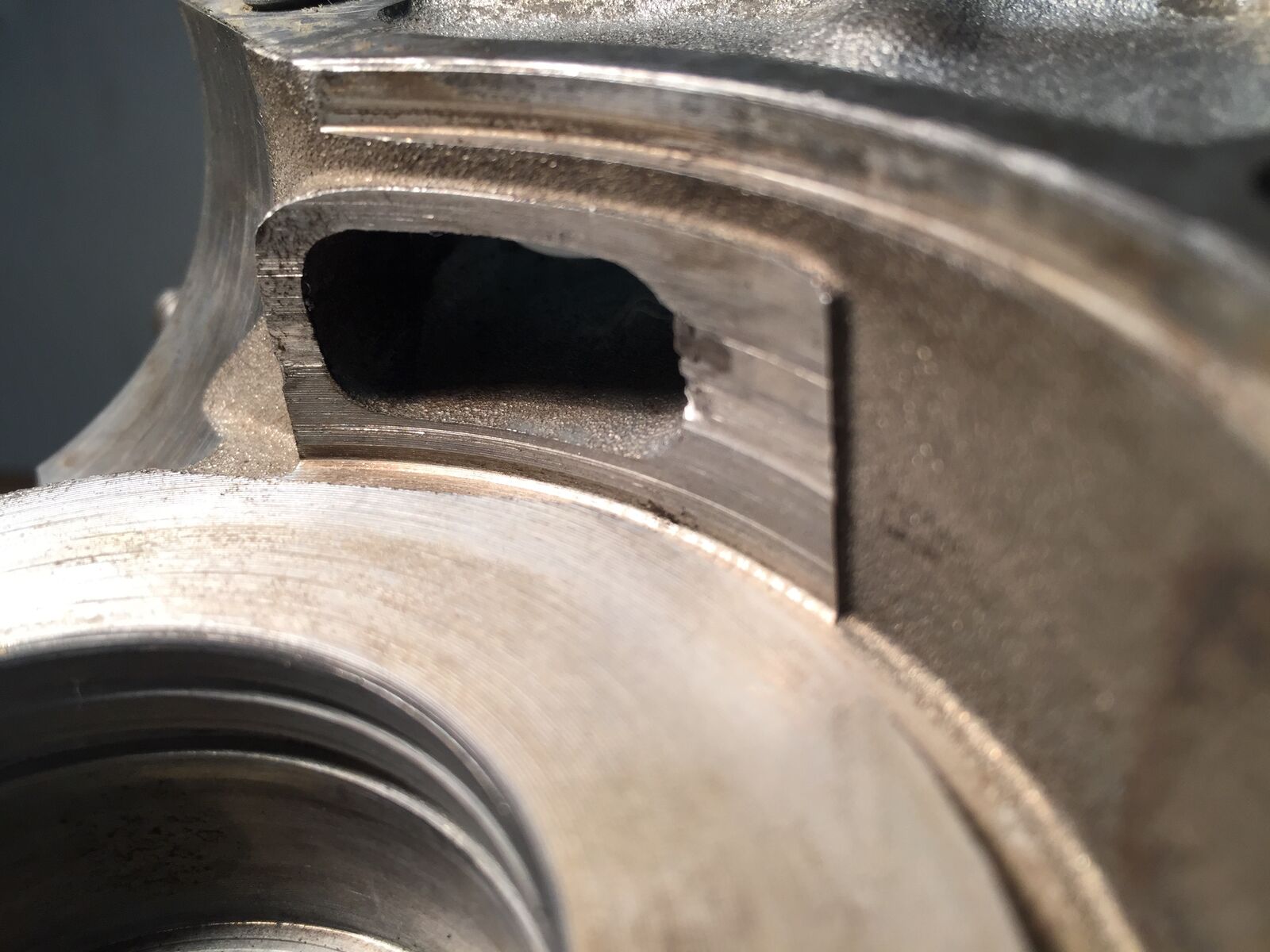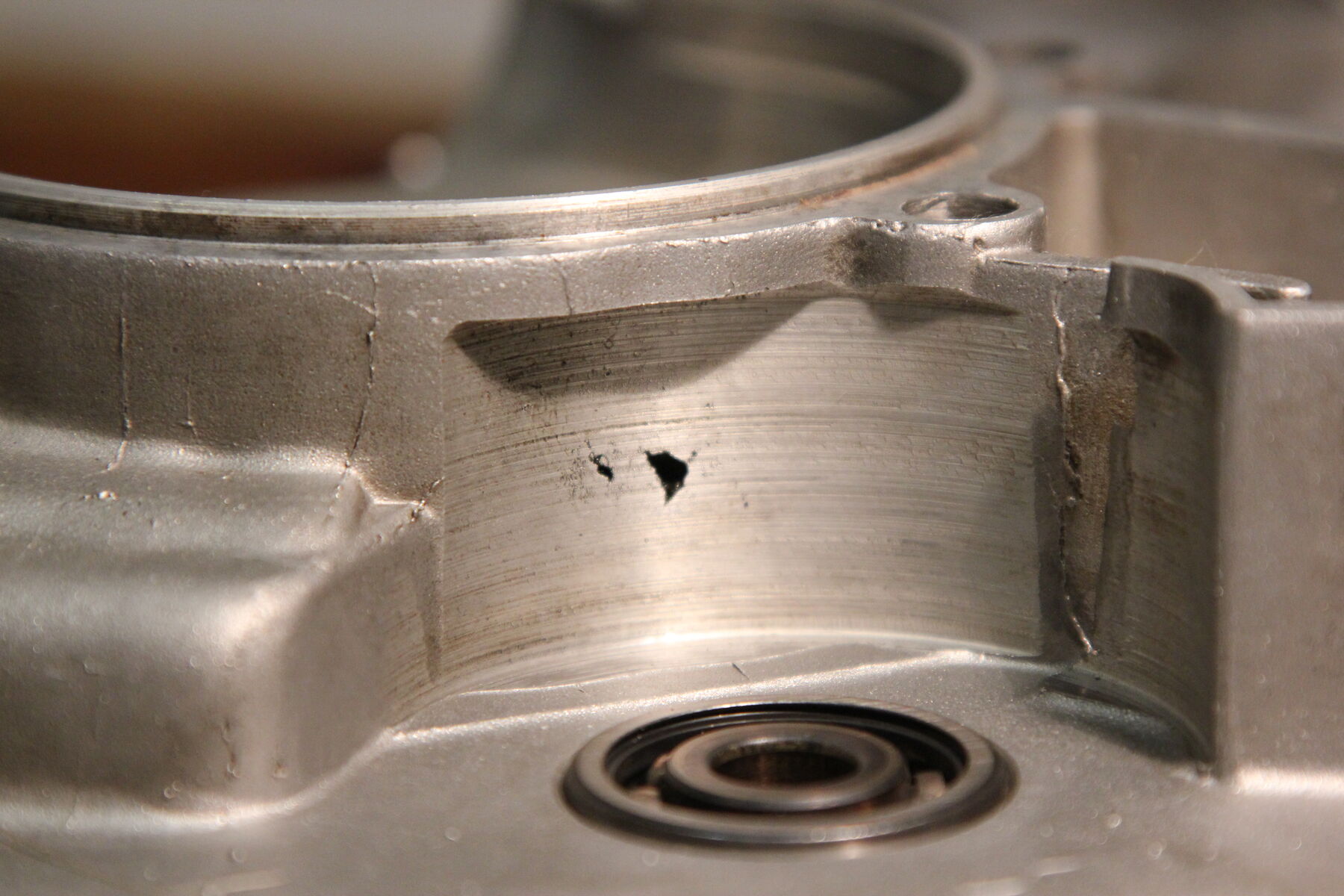 Hier der Schaden im Getriebebereich (plus etwas das ich als Blaslunker oder etwas in der Art identifizieren würde)