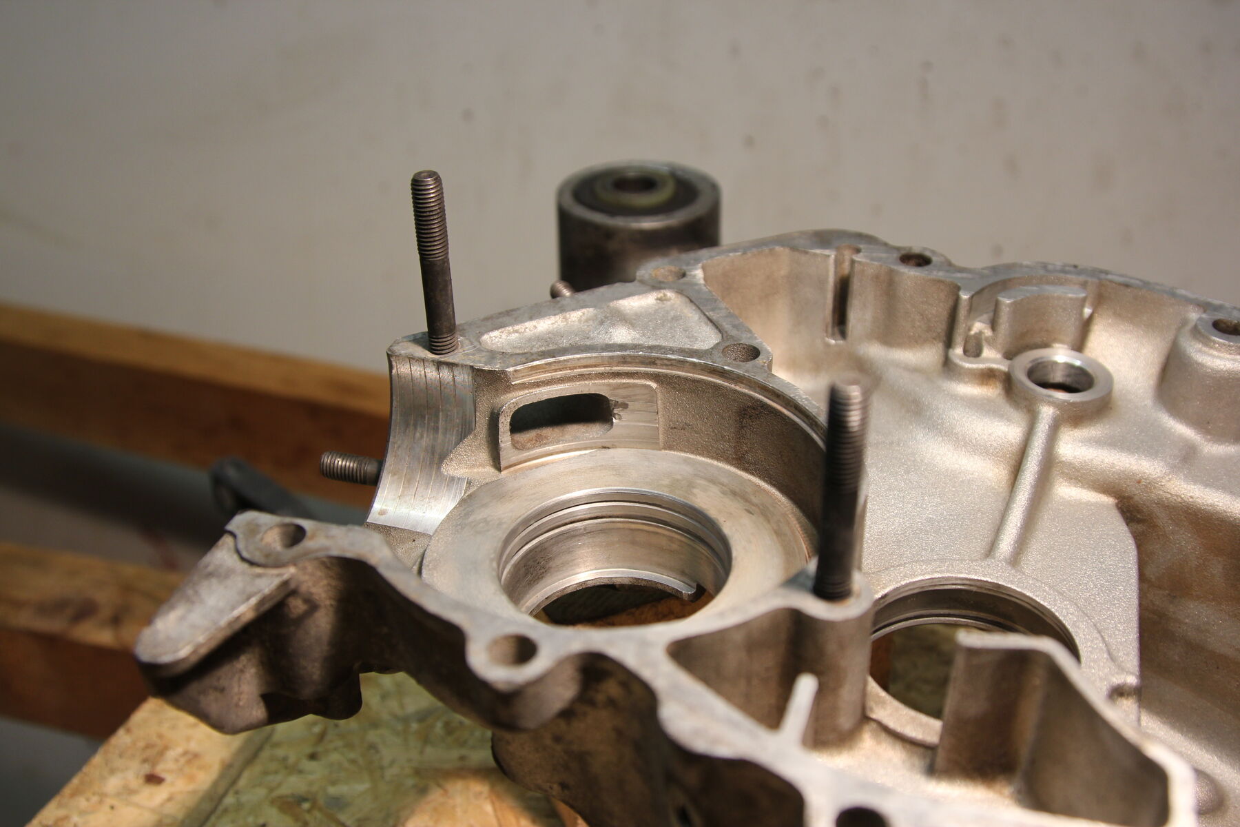 Ich frage mich aber viel mehr, warum am Gehäuse im Bereich der Nebenwelle etwas abgedreht wurde? Ist das ein Loch in Richtung Kurbelwelle?