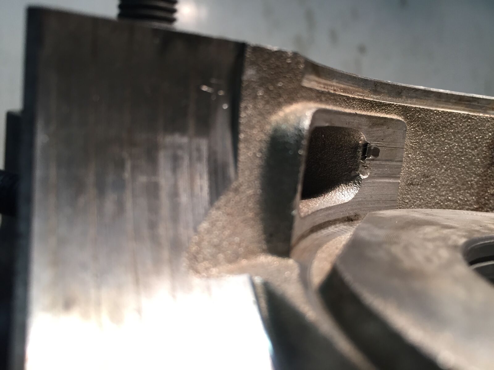 Auf der Seite die den Drehschieber abdichtet sieht man eine Spur, aber da ist keine Riefe oder Vertiefung zu spüren. Auf der anderen Seite gibts dafür viele kleine Krater: