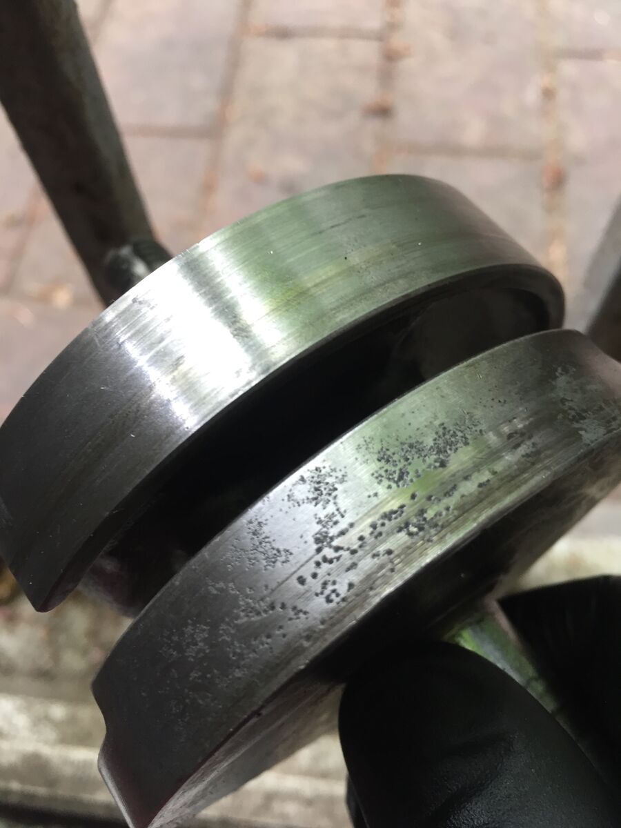 Ich bin dann endlich mal ein Stück weitergekommen mit dem Zerlegen des Motors. Hier schonmal die ersten Bilder von den Schäden die ich bisher feststellen konnte: