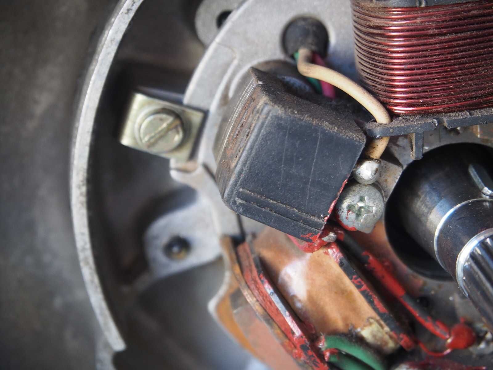 • Polrad abmachen und reinschauen. Einfaches Schadenbild: PickUp hat sich verabschiedet. Großes Schadenbild: Eine oder mehrere Nieten des Polrads haben sich selbständig gemacht und Dir die komplette Zünd-Ankerplatte zerhauen.