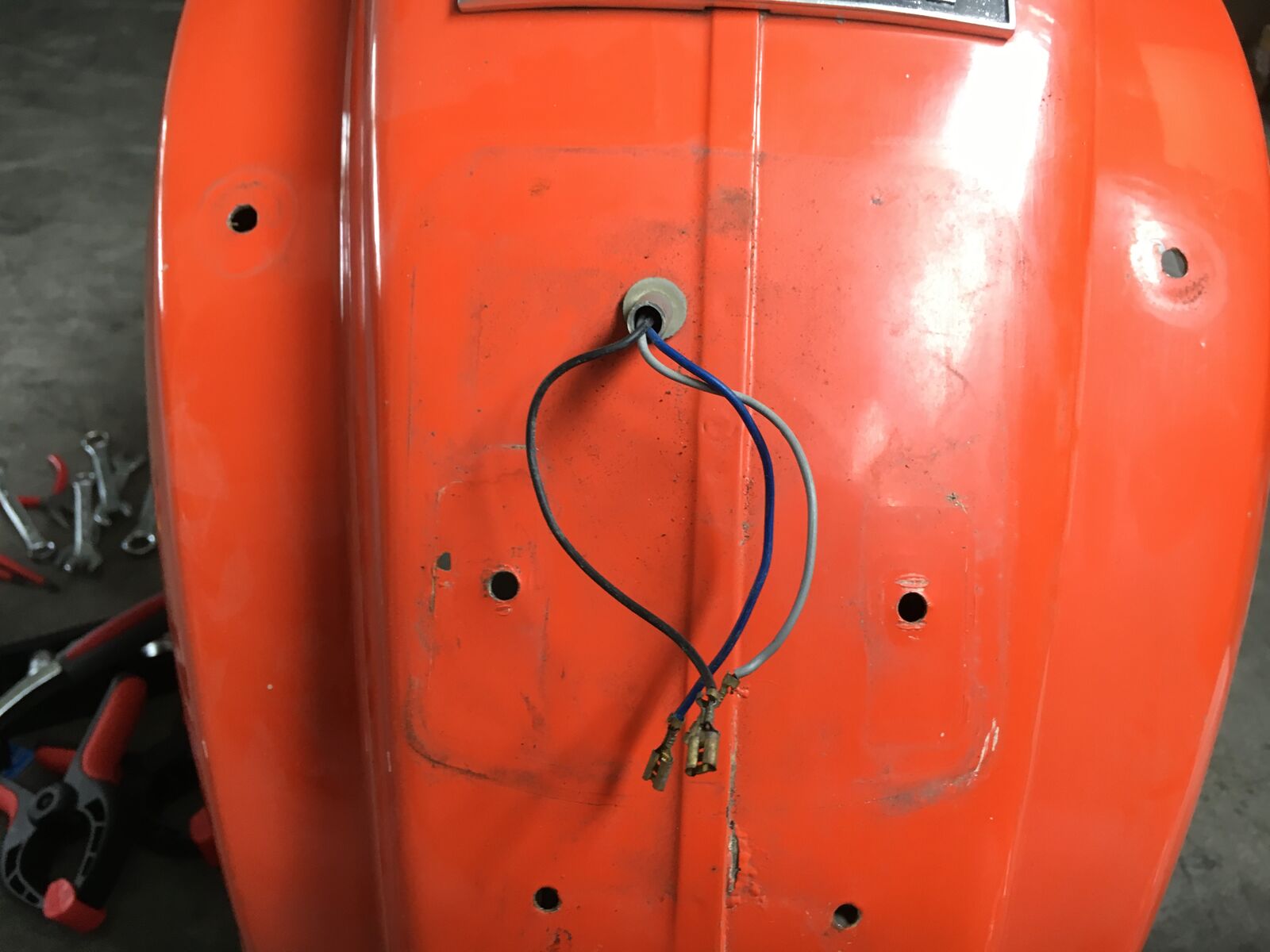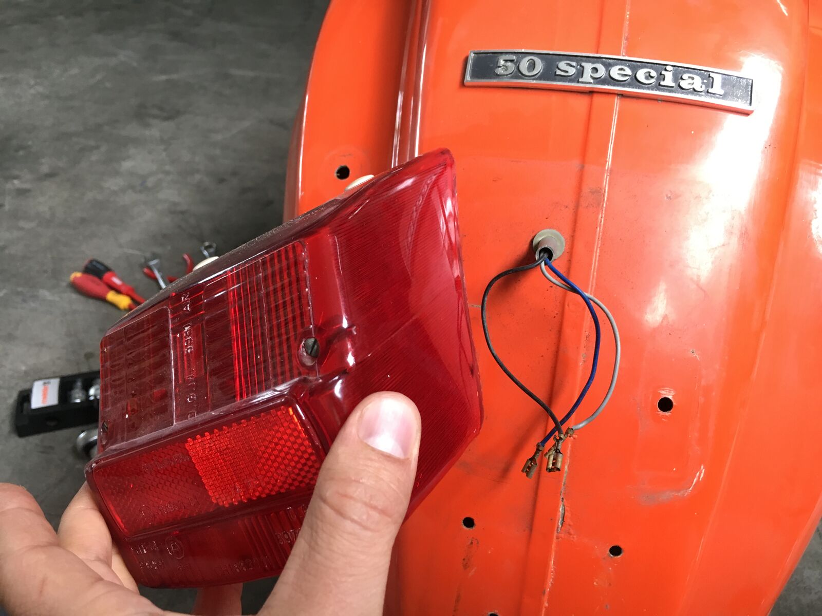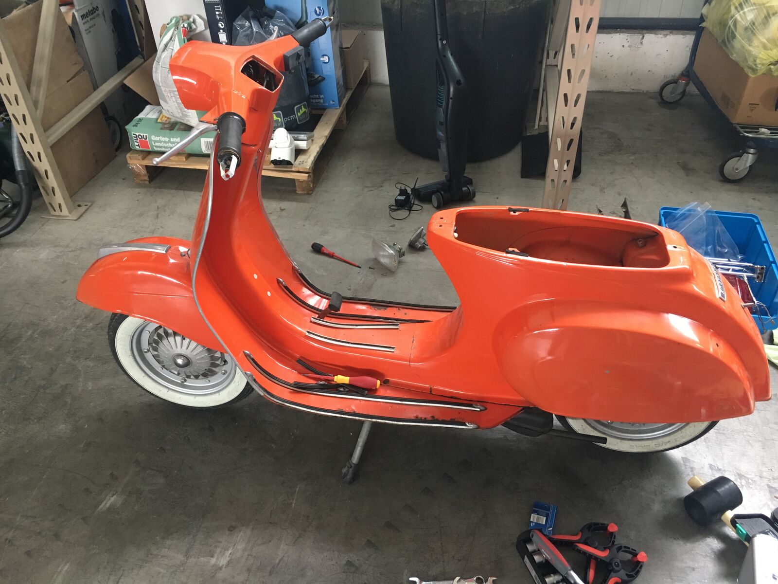 meine Name ist Ingo und ich habe meinen Einstieg mit einer PX200 angefangen, die ist in einem super fahrbereiten Zustand und quasi mein Alltagsroller. Da ich mich sehr für die Technik interessiere, habe ich mir nun eine weitere Vespa gekauft. 50iger Special Baujahr 74 und möchte die nun komplett auseinanderbauen, die notwendigen Teile ersetzen. Bei der Karosserie bin ich mir noch unsicher. Da ich erst sehe wenn sie solo da liegt was wirklich zu tun ist. Mein Wunsch wäre sie Glasperlenstrahlen, paar Dellen auszubessern, das Trittblech hat am Kickstarter ein leichten Riss aber die Strebe ist in Takt. Dann bearbeiten, Grundieren und neu Lackieren. Der Motor hatte 2013 eine Revision inkl. einem 75er Satz und läuft beim ersten Kick. Aktuell zerlege ich Stück für Stück, dokumentiere alles und stoße dabei auf schlampinge Arbeiten meines Vorbesitzers. Aktuell ist ein größeres Rücklicht dran mit Bremse, ich hätte aber gern ein kleineres