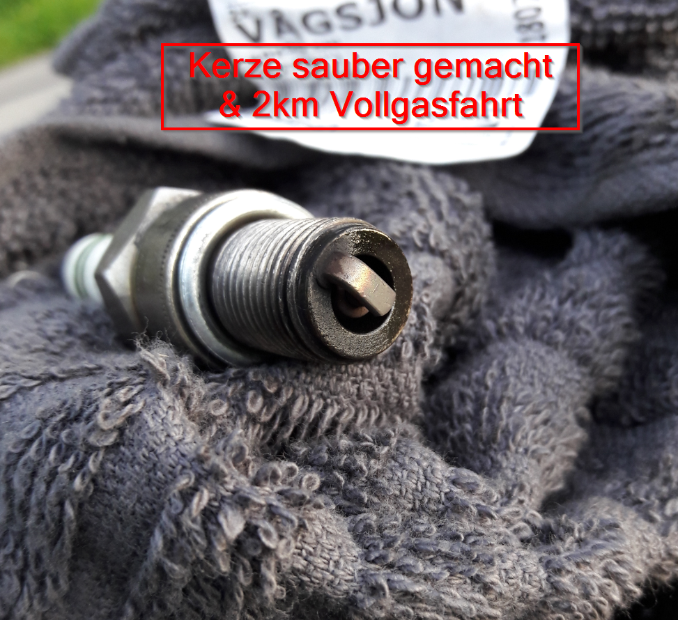Der Motor läuft bei entferntem Filtereinsatz sauber bis zum Ausdrehen. Also genau das Gegenteil, was die Aussage bzgl. Ansaugwiderstand angeht. Im Anschluss noch runtergedüst auf 68 und nun passt die Kerze auch...