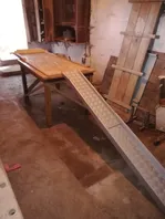 Massiver Tisch mit Auffahrrampe.