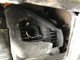 Beim zweiten Bild habe ich noch eine andere Problemstelle. Hier ist mir eine Schraube abgebrochen, sie dient normalerweise zur Befestigung des Auspuffes. Jemand ne Idee wie ich diese gelöst bekomme damit ich eine neue einsetzen kann?