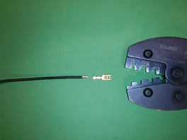 Auch die Stecker sind fehlerhaft verquetscht (obwohl auf deinem Bild brauchbare Crimpstecker zu sehen sind, sind diese fälschlich verquetscht). Mit der passenden Crimpzange verpresst man diese Stecker normgerecht und dauerhaft (die Stecker haben Quetschlaschen, um sowohl die Litzen als auch die Isolierung zu vercrimpen - keinesfalls mit beiden Laschen nur die Litze).