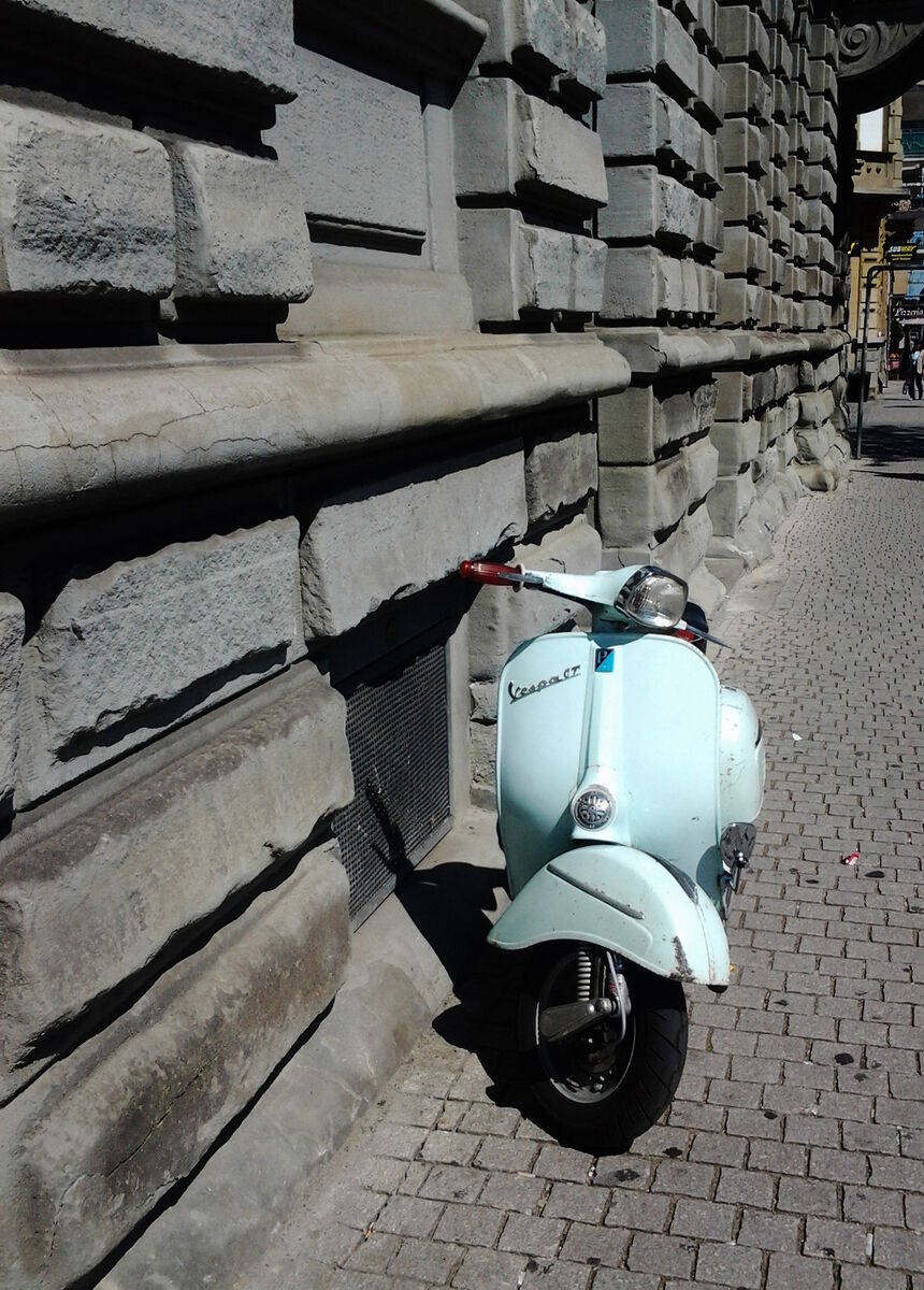 Sehr schön auf jeden Fall. Die Vespa wird auch schon viele Jahre auf den Buckel haben.
