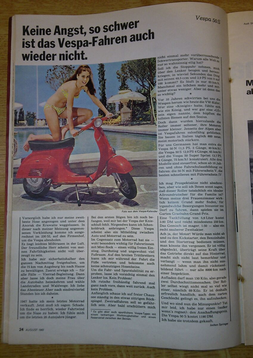 Kaufberatung: Vespa 50 S Testbericht ADAC Motorwelt August 1967