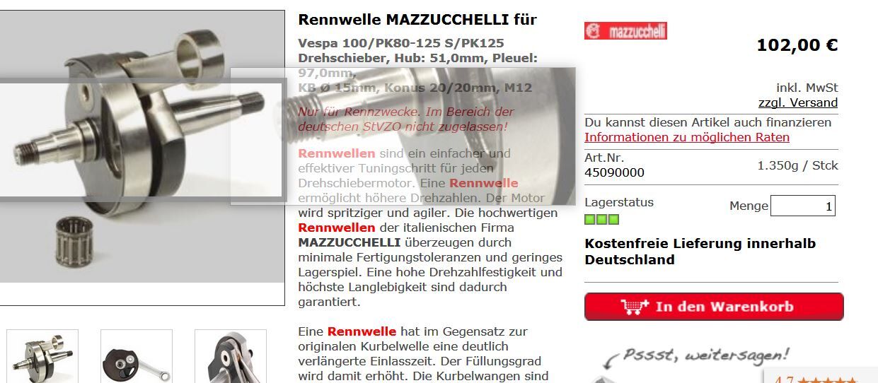 Auspuff habe ich eine ETS Banane und einen Polini right zur Verfügung.