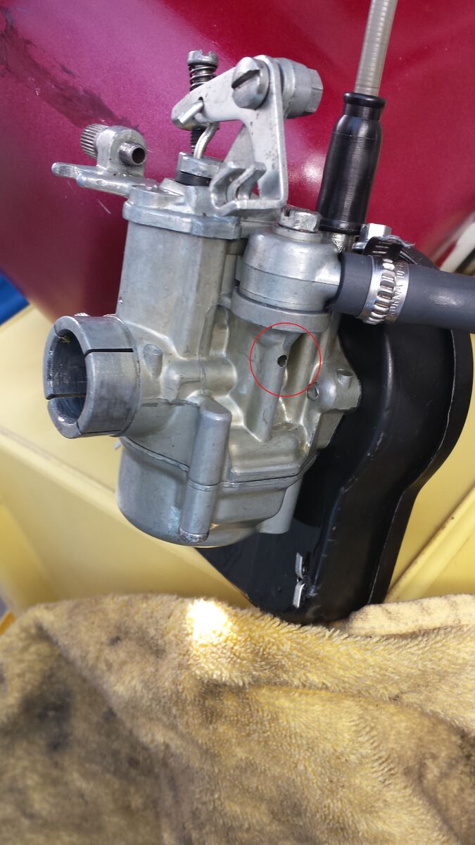 Überprüfen kannst Du auch noch den Sitz der Schelle am Übergang von Vergaser zu Ansaugstutzen. Manchmal sind diese Schellen etwas verbogen, sodass sie zur Hälfte unwirksam sind.
