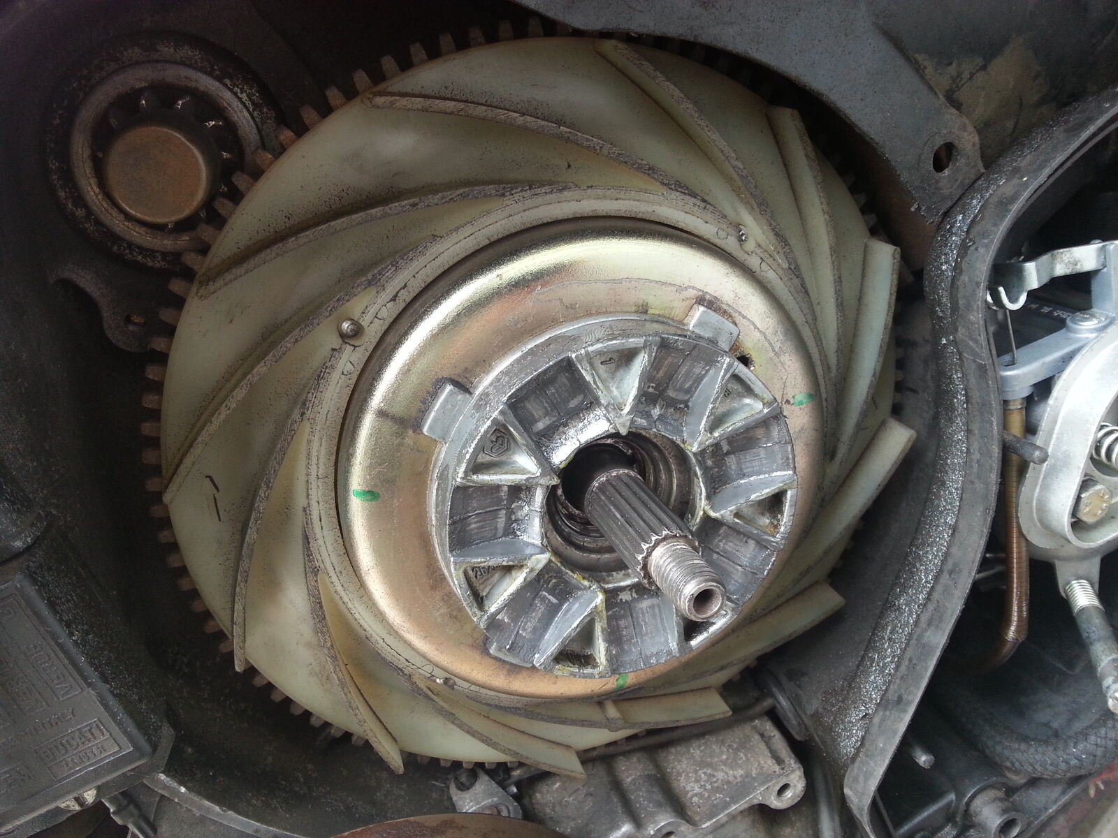 Ich habe nun schon die Komplette Variomatik und die Kupplung auseinander gebaut, gereinigt und wieder zusammen gesetzt. Um die Gewichte zu verbauen habe ich den Roller hingelegt,