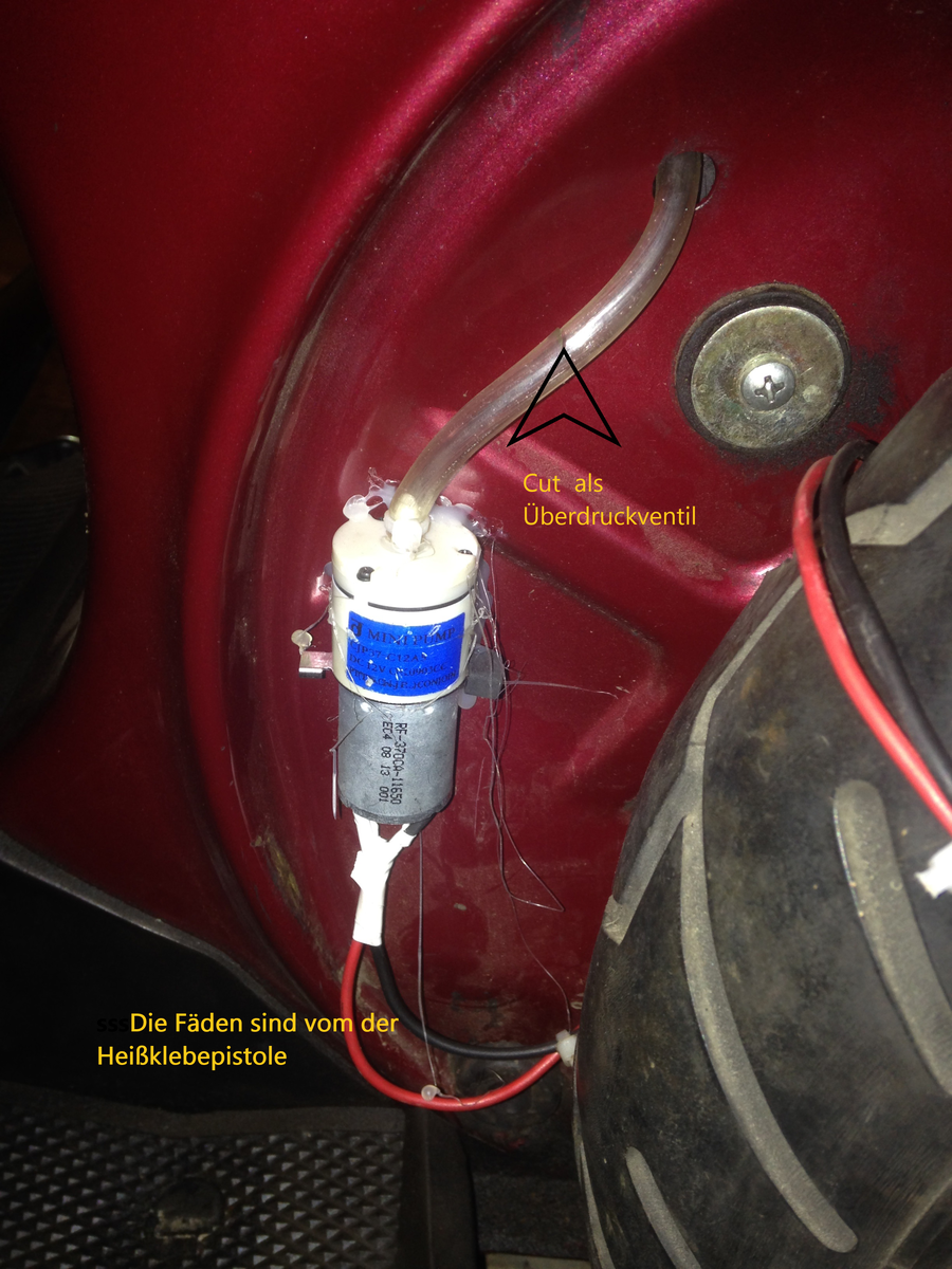 Habe den Entlüftungsschlauch aus der Vertiefung geholt, dann mit aller Kraft reingeblasen, danach sofort mit einer Schraube verschlossen. Somit hatte ich einen kleinen Überdruck im Tank.