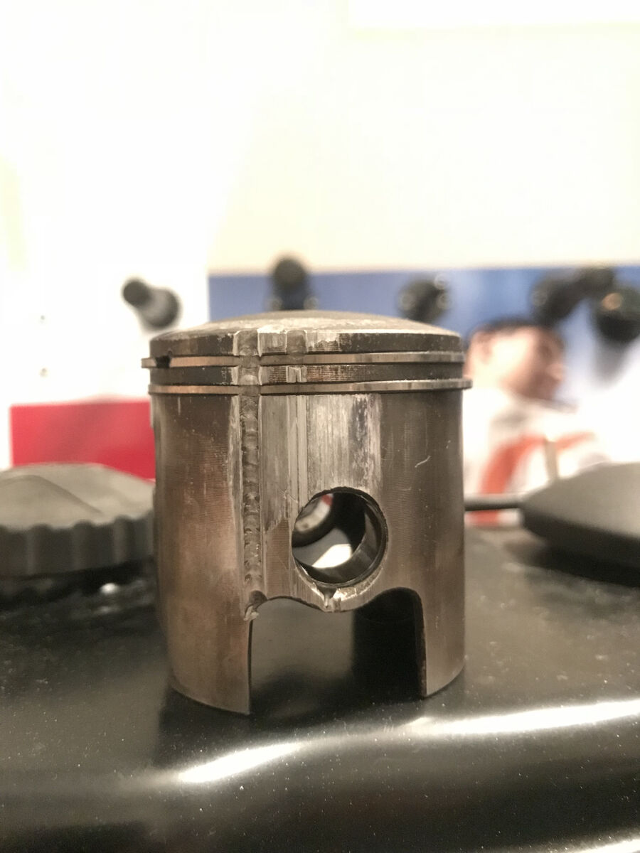 jetzt mal ganz ehrlich, dein Plan sieht aus, dass du lediglich den Kolben tauschst? Das ist doch scheisse. Aus meiner Sicht ist der Zylinder Schrott und du hast irgendwo den Recht großen Ausbruch stecken. Du fetzt dir jetzt wahrscheinlich noch den kompletten Motor! Die Saison ist doch sowieso so gut wie um. Mach den Motor auf und mach es einigermaßen ordentlich. Du hast jetzt Zeit.