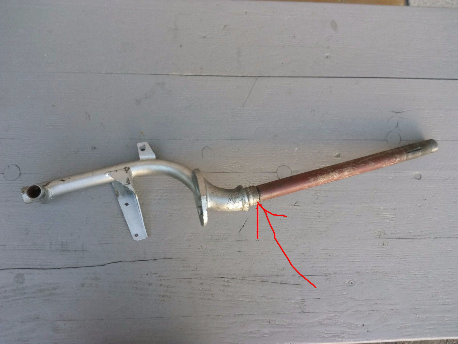 Ich habe eine VNA1 1959 zum restaurieren komplett zerlegt. nun habe ich das Problem, dass bei meinem Lenkrohr die Aluhülse gem. Foto gebrochen ist.