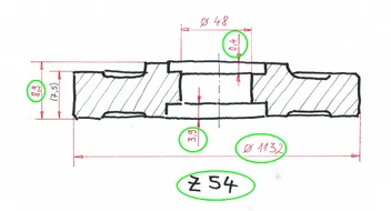 Zahnrad Smallframe 54 Zähne gesucht... bitte techn. Zeichnung beachten!