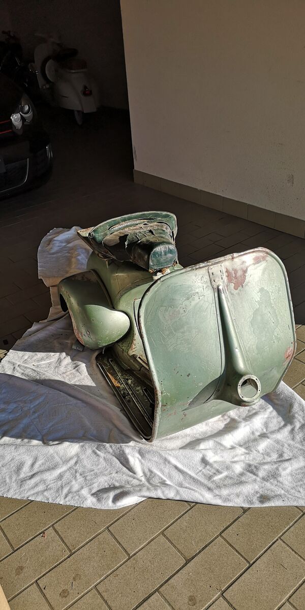 • Leute, genau lesen! Die Bilder zeigen wohl nicht die zu beurteilende Vespa sondern eine Acma. Bei mehreren Schichten Lack würde ich Strahlen und neu lackieren, evtl kann man versuchen den O´-Lack frei zu legen. Was genau ist eigentlich eine Vespa V31 Bacchetta? Hab ich noch nie gehört.