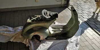 Leider hat die Vespa schon ein paar Nachlackierungen hinter sich (hab drei verschiedene Grüntöne und ein Weiß gefunden).