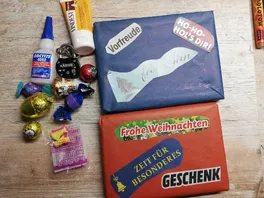 Das zweite Schreiben erläutert das Geschenk. Die Trilogie der Kerze ist interessant, sorry daß ich das als Rosenseife eingeschätzt hatte. Ob es wirklich der Schwarzwälder war, oder vielleicht der "Asyl-Schweizer". Tannenzäpfle ist ja nun auch in einem anderen Paket augetaucht.