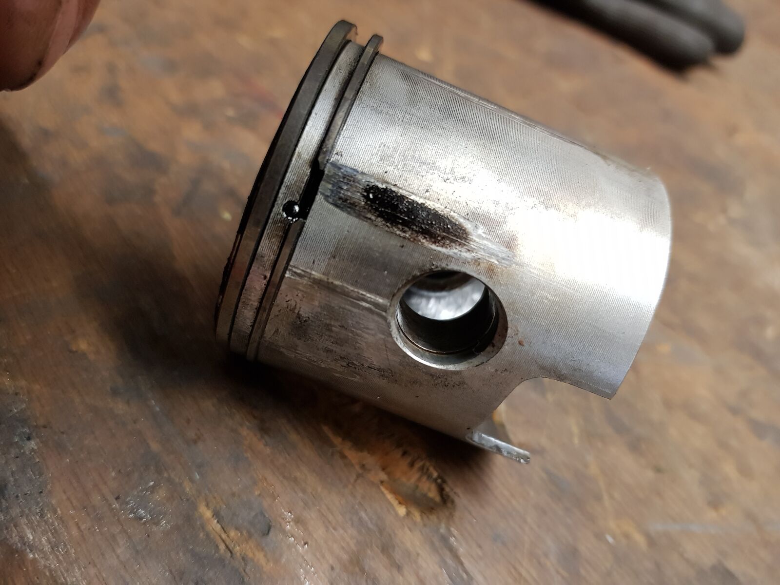 Laufleistung 1500 km. Der untere Kolbenring klemmt an einer Stelle
