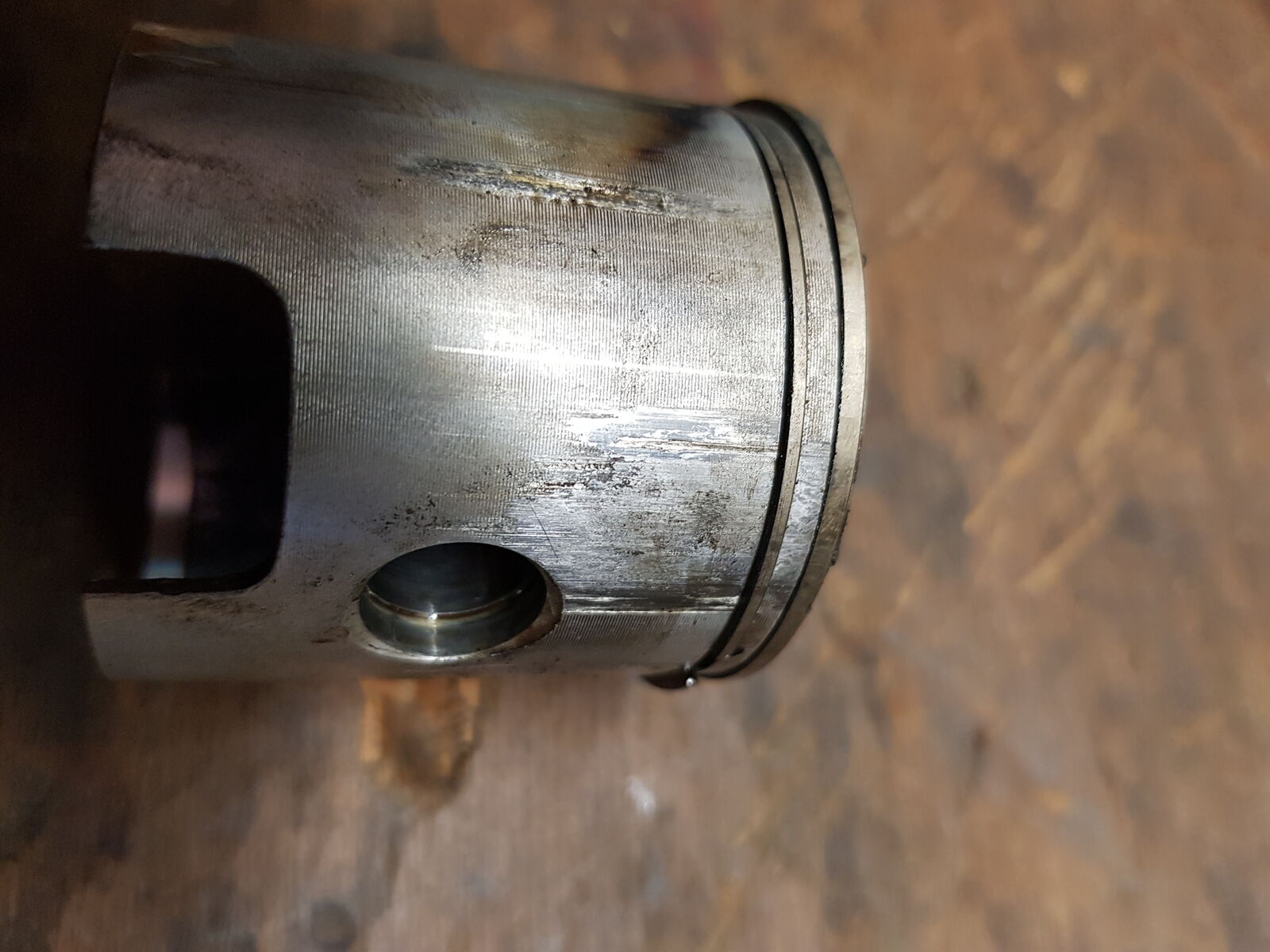 DieKlemmspuren am Kolben halte ich für nicht dramatisch. Wie sehen die korrespondierenden Stellen im Zylinder aus ( Fotos ) ?