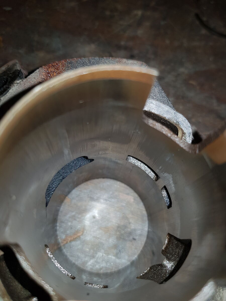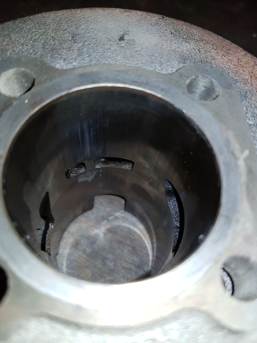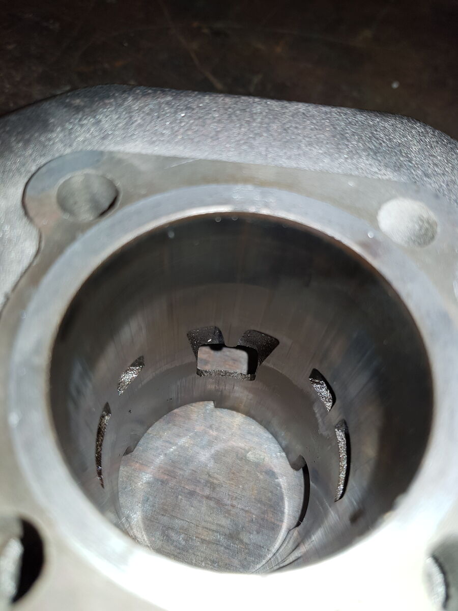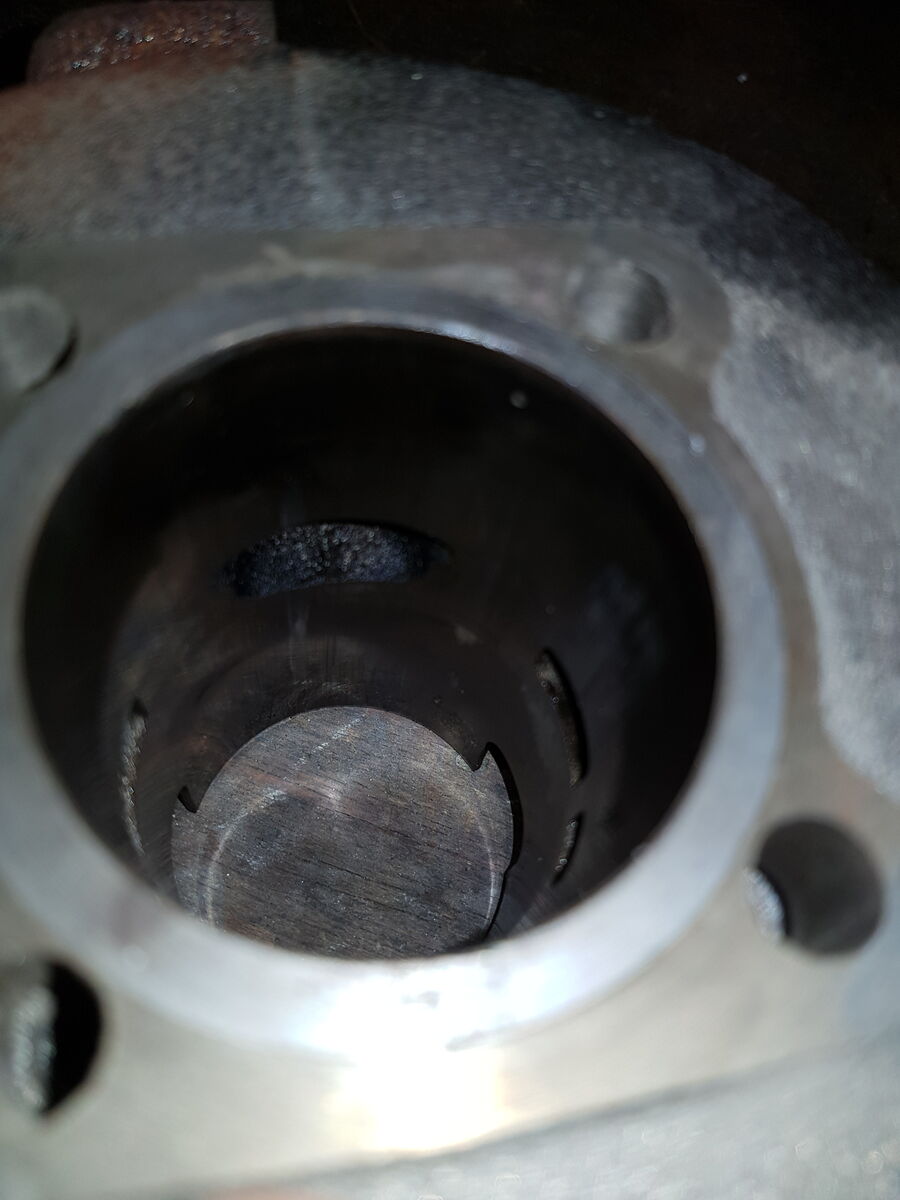 So, ich hab den Zylinder mit Natronlauge von Aluresten gereinigt, neue Kolbenringe montiert und den Kolben mit feinem Schleifpapier etwas bearbeitet.