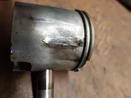 DieKlemmspuren am Kolben halte ich für nicht dramatisch. Wie sehen die korrespondierenden Stellen im Zylinder aus ( Fotos ) ?