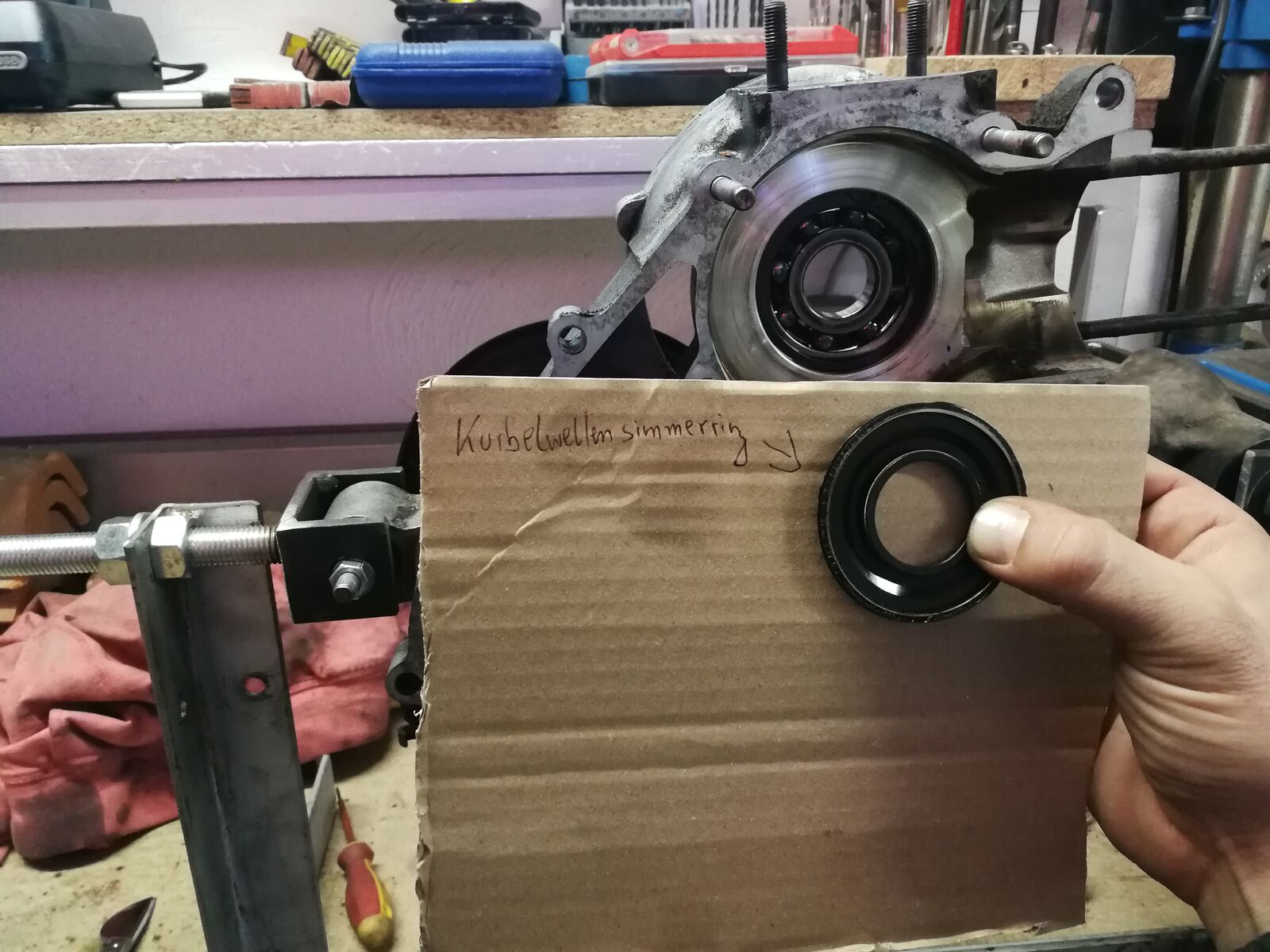 Wegen des Kurbelwellensimmerrings,...ich habe dort 2 Rillen im Lagersitz,hab extra nochmal geschaut. Einen großen Einstich für den Segering und davor nochmal einen etwas dünneren Einstich. Allerdings ist der Simmerring so wie das sehe trotzdem aus Metall. Hier das Bild vom Simmerring: