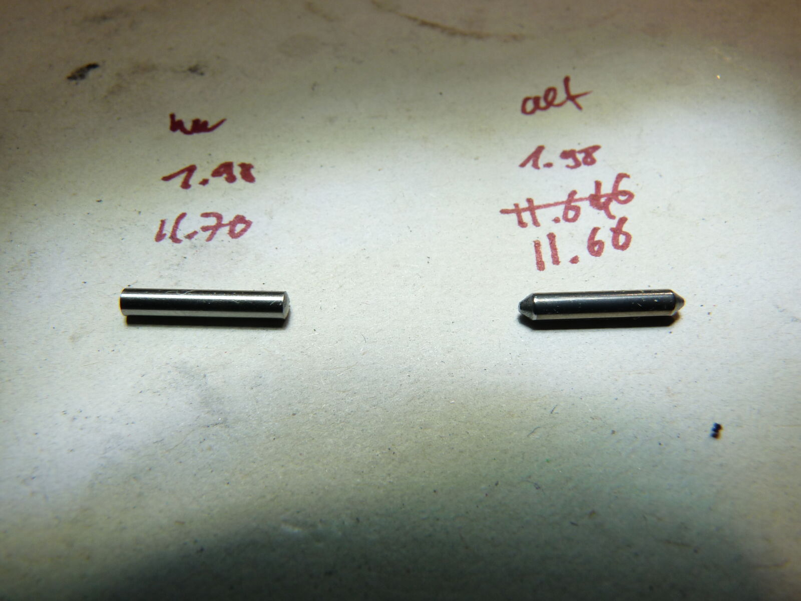 Der Freistich in der Lagerfläche für die Nebenwellennadeln ist wichtig. Bei Nachbaunebenwellen fehlern die schon mal. Die Nadeln sitzen dann quer und beeinträchtigen den Rundlauf. Die Länge der Lagerfläche für die Nebenwellennadeln ist ebenfalls wichtig. Einige Nachbaunebenwellen haben zu kurze Lagerflächen.