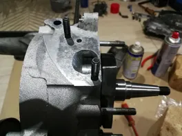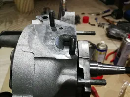 Wange von der Kurbelwelle dichtet den Einlass auf der linken Seite nicht mehr ab, da war n Millimeter Luft. Hab ich mir etwa doch beim Fräsen nach unten irgendwo was weggenommen ohne es zu merken?Ich dachte echt das wars jetzt. Aber dann hab ich gemerkt das das Pleuel nicht mittig steht...