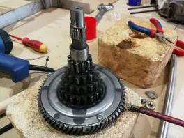 Erstmal waren alle Getriebeteile dran. Die angefasten Nadeln der Nebenwelle gibt es ja wohl neu nicht mehr, also habe ich meine wieder verbaut. Aber was musste ich feststellen, eine fehlt. Mist