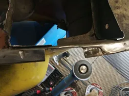 Das ist halt das dicke "tragende Blech". Ich hatte überlegt mit nem Dremel das möglichst weit sauber rauszuschneiden und dann ein neues Stück Blech einschweißen zu lassen, bevor das Beinschild dran kommt. Danach soll alles chemisch entlackt, entrostet und KTL Beschichtet werden werden. Zwischen den Blechen ist auch etwas Rost. Muss man sich da groß Gedanken drüber machen, wenn's chemisch entrostet wird? Das soll ja überall hinkommen