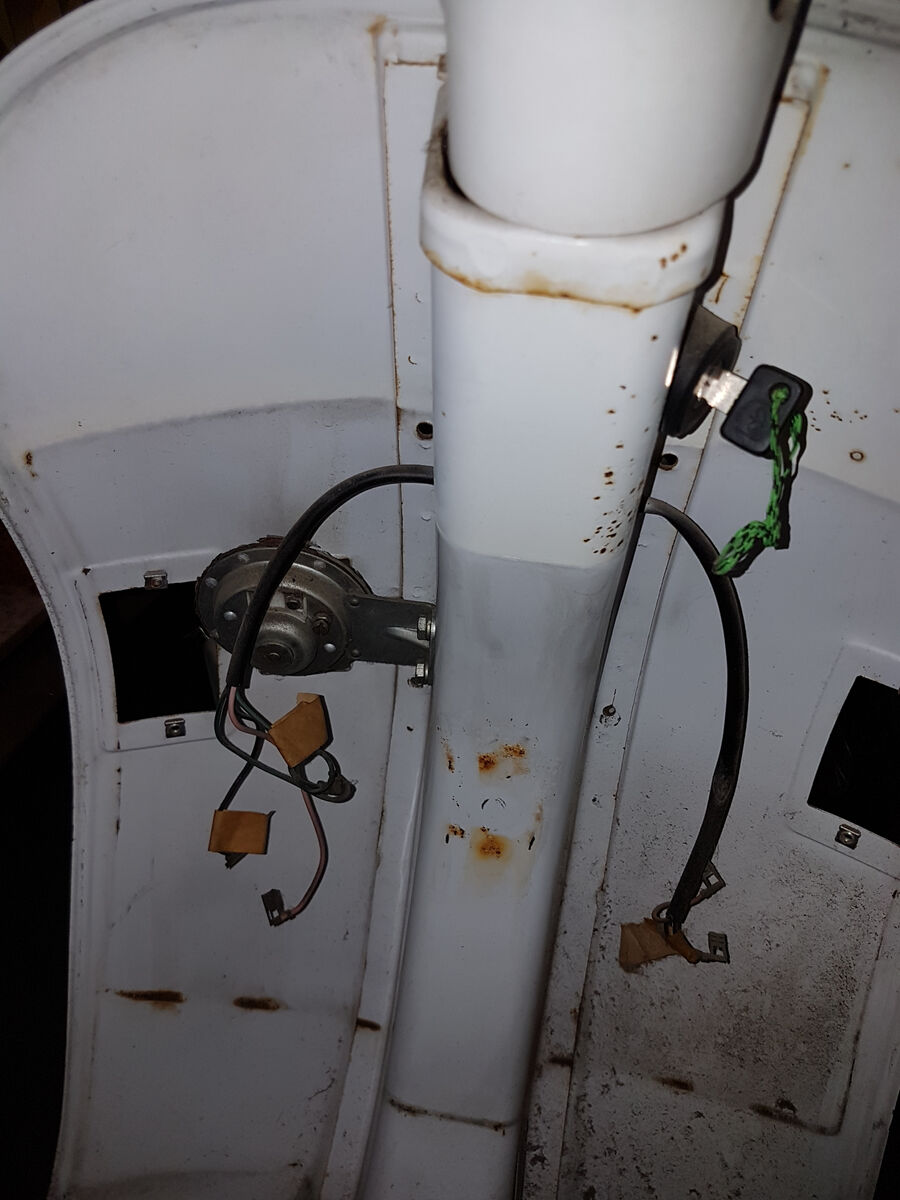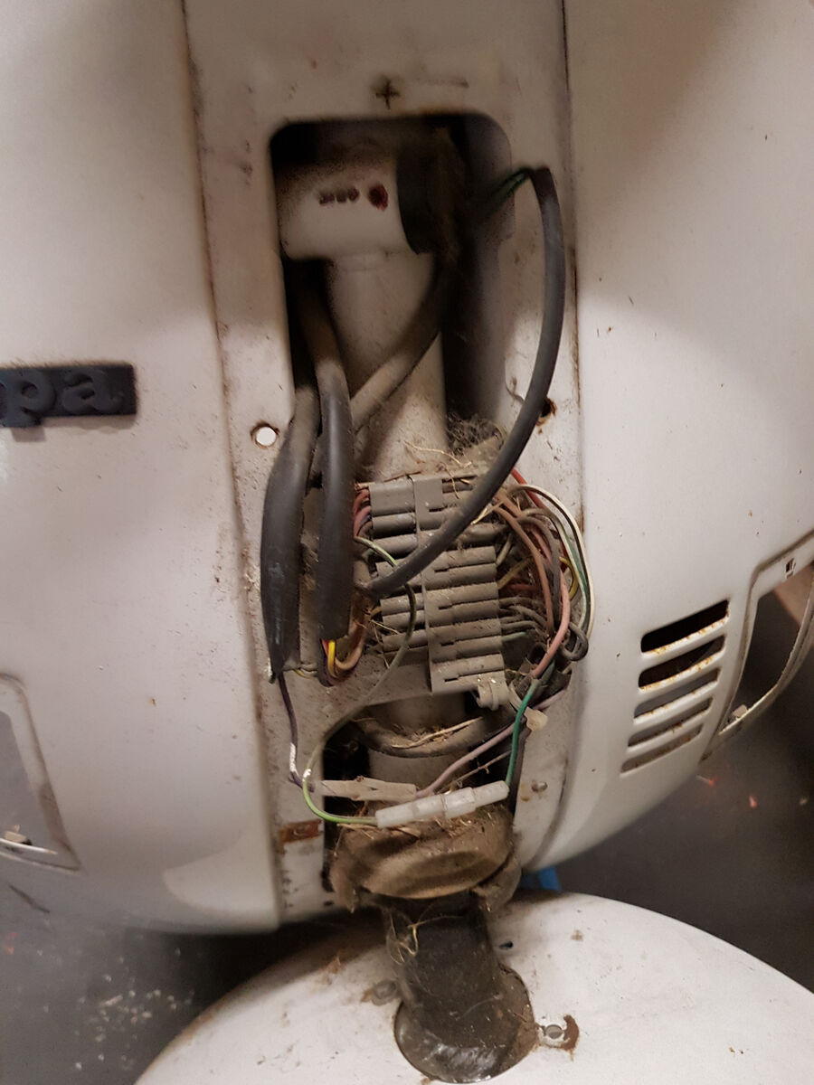 Ich hab mal ein paar Fotos, hoffe ihr könnt was davon erkennen, die hatte ich schon gemacht, nachdem ich angefangen hatte, damit ich weiß, wie es ca aussah. Seither hat sich aber nix verändert. Hätte mich hier vielleicht vorher anmelden sollen...Bisher hab ich mir von meinem Mann immer nur anhören müssen, ich soll das Teil verticken und mir eine gebrauchte Vespa kaufen, das wäre günstiger....aber ich kann mich nicht von der kleinen lösen, Sie war mein Ticket in die Freiheit, als ich Jung war...