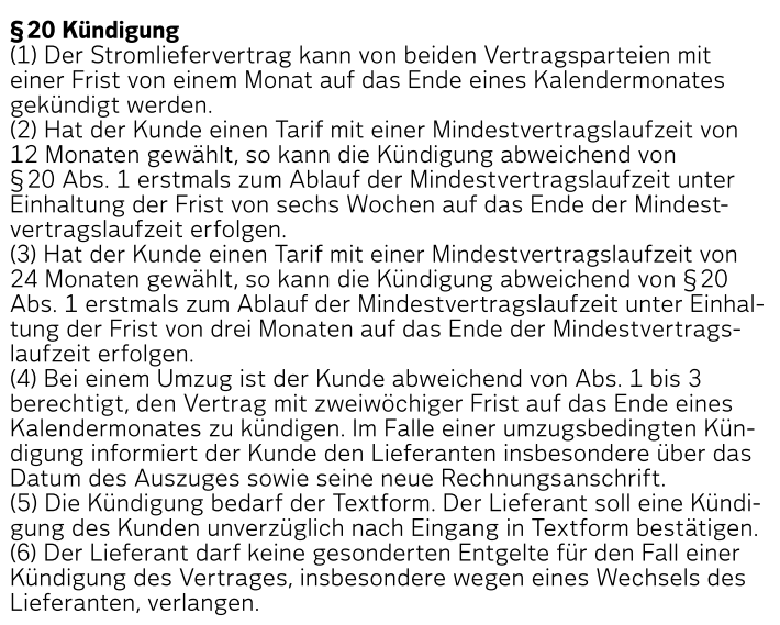 • Der entsprechende Paragraph gibt diesbezüglich nicht viel (mehr) her, siehe Anhang... Im Vertrag selbst wird nur auf die §§ 20 und 23 verwiesen: