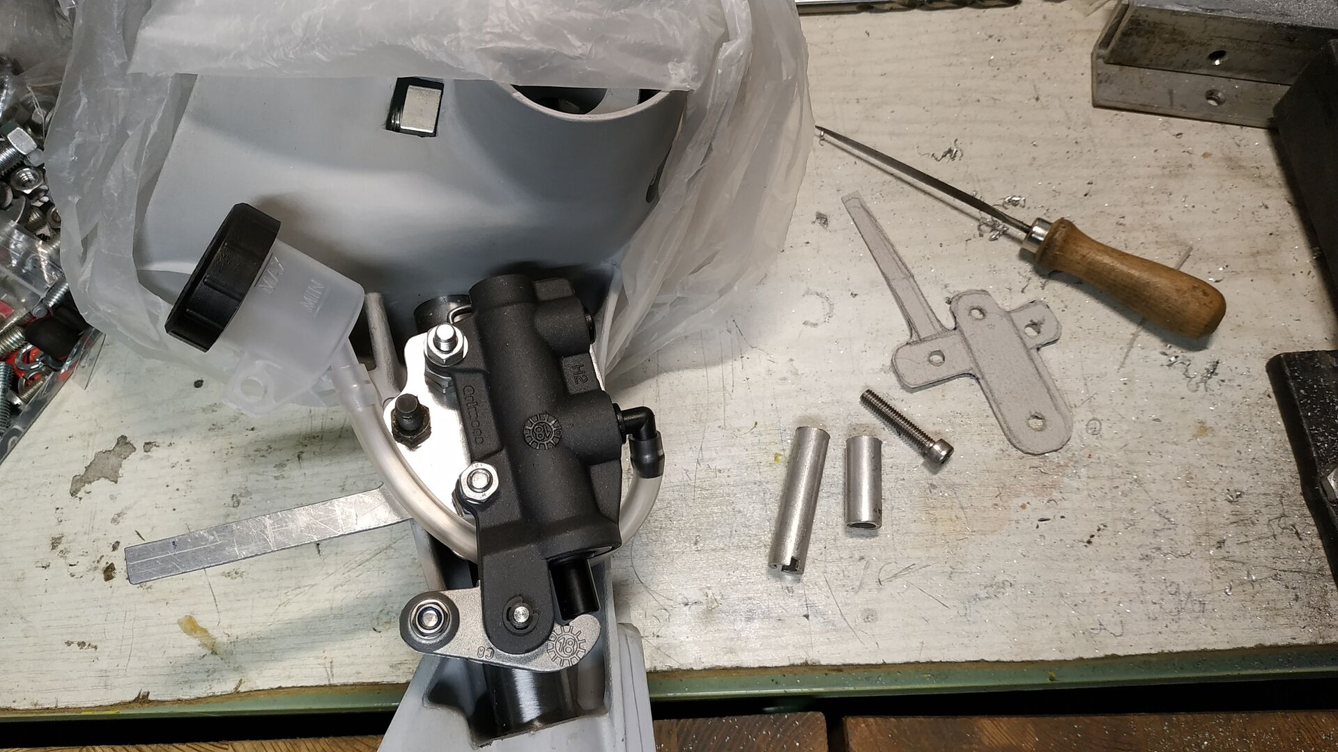 Geplant ist erst mal die Crimaz Bremskolbengeber mit Griff und Halter (nachzu)bauen, der passt auf beide Scheibenbremsen.