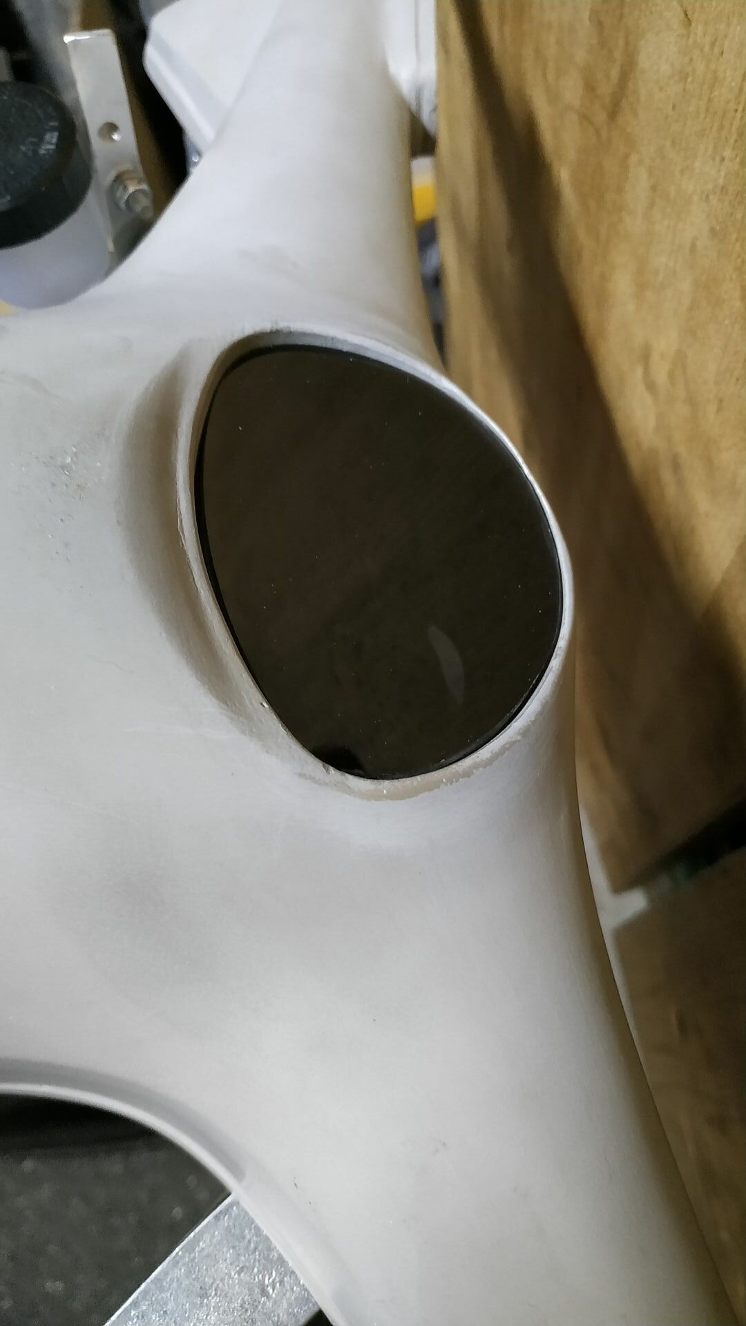 Vier Lagen getöntes Acrylglas, Zwei hinten mit Loch für die Displayaufnahme.