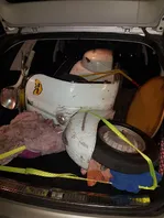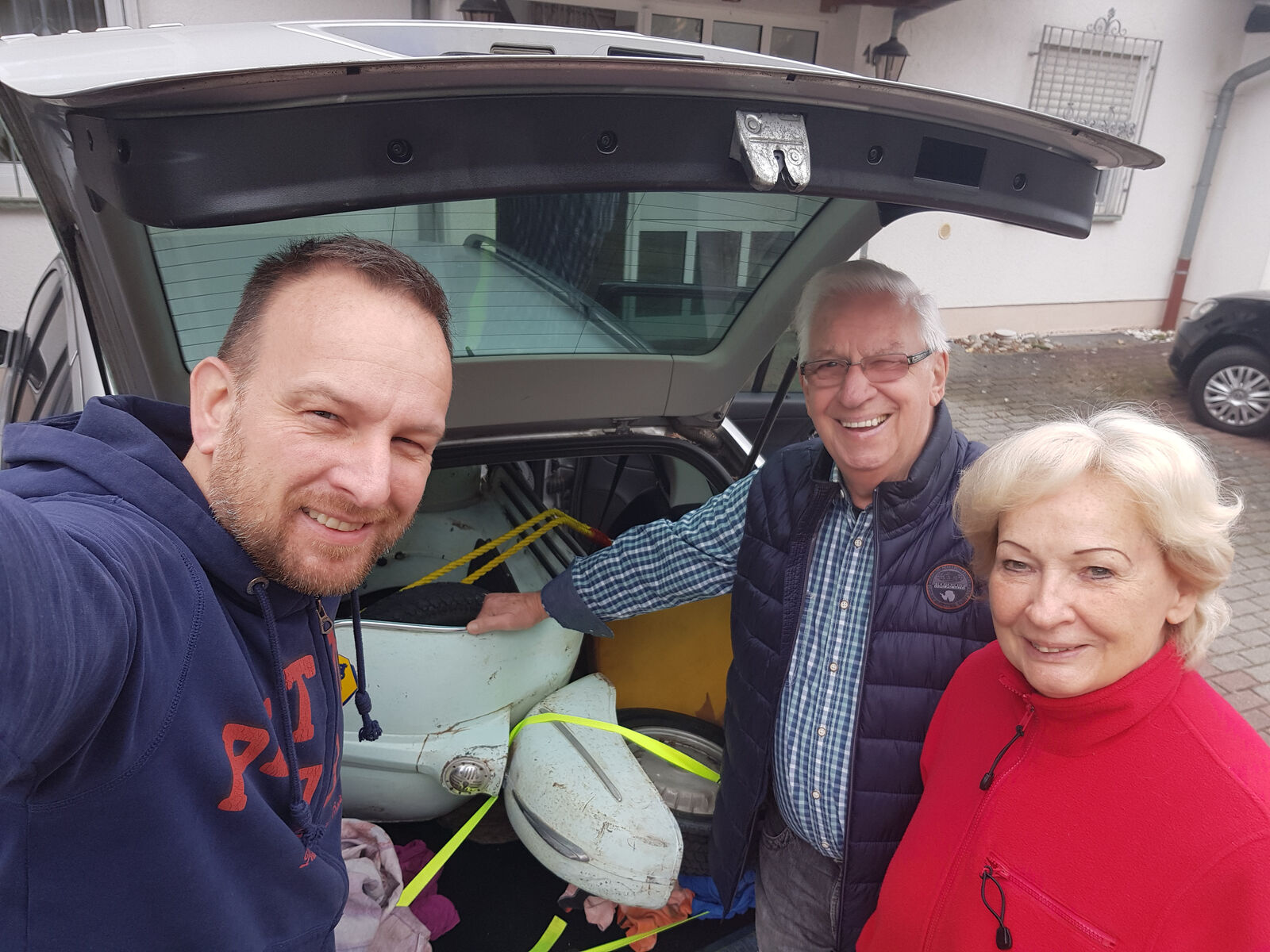 Also Benzin und Öl raus, das Ding zu zweit angepackt und ab in den Kombi (C-Klasse) gesteckt - was sich jedoch nicht so einfach gestalten sollte. Der 1. Versuch mit dem Koti zuerst rein scheiterte... also noch mal raus und dann mit dem Arsch zuerst rein (auf Motorseite) und gut verzurrt - das passte top