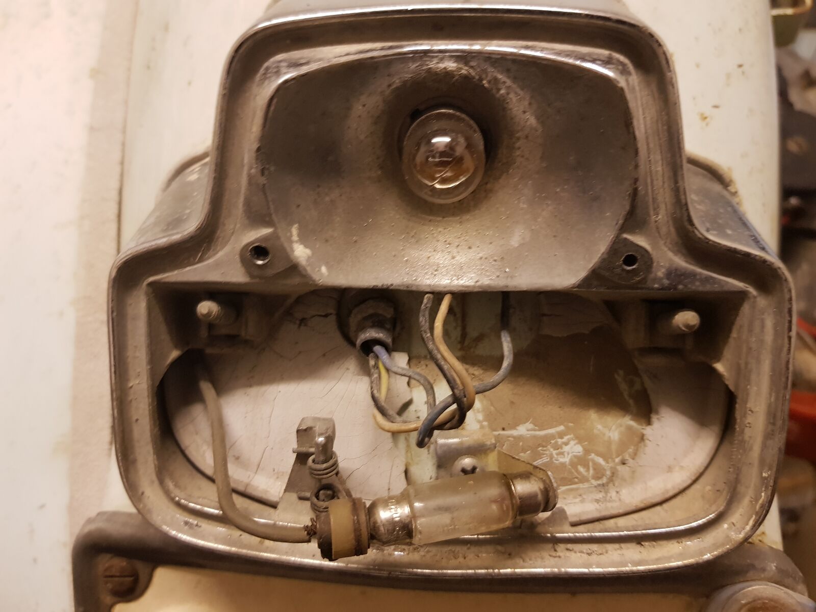 Dann habe ich noch das Rücklicht ausgebaut, da die untere Dichtung im Arsch war. Wer weiß wie lange die da schon drauf war... vielleicht sogar noch die Erste! Und auch hier wieder ne Menge Sizilien mitgekommen. Überall richtig viel Staub drauf... Leider ist beim Siem-Rücklicht das linke Lampenglas-Gewinde im Strahler vermurkst worden. Hier wurde eine M4 reingedrückt. Plan: ich werde nun ein M5-Gewinde rein schneiden und von hinten eine 5er-Schreibe rein drehen und verkleben (welche ich vorher bohre und ein M3 rein schneide). Somit sollte ausreichend Fleisch da sein. Vielleicht nehme ich auch ne Madenschraube (wenn ich irgendwo im Fundus eine finde...).