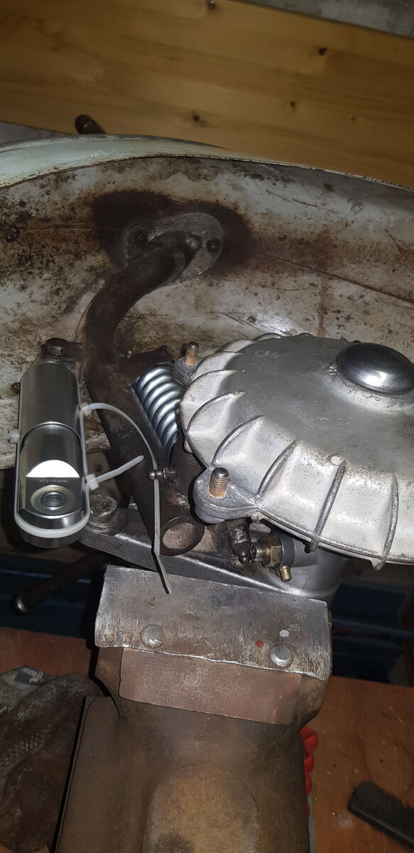 Als erstes habe ich die Felgen innen ssilber lackiert. Anschließend gings dann an die Gabel, welche ich schnell ausgebaut hatte. Die Lagerkugeln blieben zum Glück auch in ihren Käfigen... Und: der Grund meines Ausbaus kam auch zum Vorschein - die Überwurfmutter der Tachowelle :saint:. Hab die Gabel dann mit nach Hause genommen und im Keller dann im Schraubstock versucht den Dämpfer endlich rein zu bekommen. Ein wenig Körperkraft, der Hebel der Gabel und schwubs war das Ding drin - das ging ja mal super einfach so top-)! Es hatte also wohl seinen Grund das die Tachomutter in der Gabel verschwand... :-4.