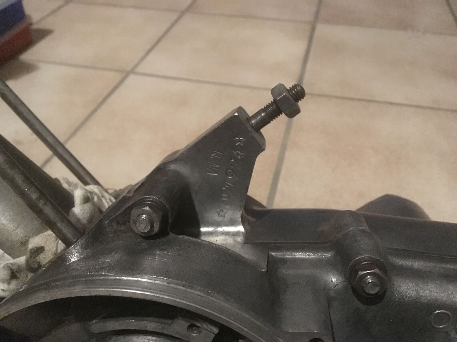 Steht neben der Schraube mit welcher der Motorblock und Schwinge