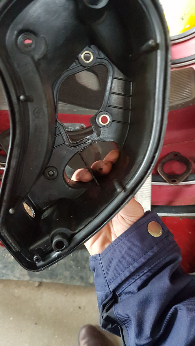 Das kleine Loch mit dem Gummi. Da kommt das Rohr von der Ölpumpe durch.
