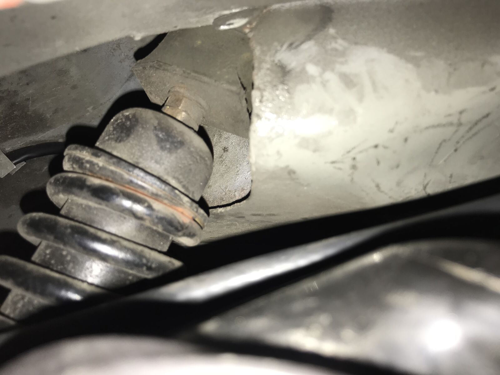 Wasen mit dem Aufnahmeblech Rahmen, wo der Dämpfer mit verschraubt ist? Wäre leider nicht der erste, der wegen Korrosion sich verändert...