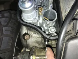 Und zweites Bild ist der choke, während die Zündung an ist. Und letztes Bild: die vordere Schraube ist standgas und die hintere für Sprit. Wie weit muss die Sprit Schraube raus gedreht werden ?