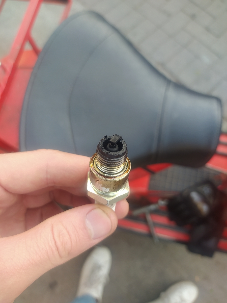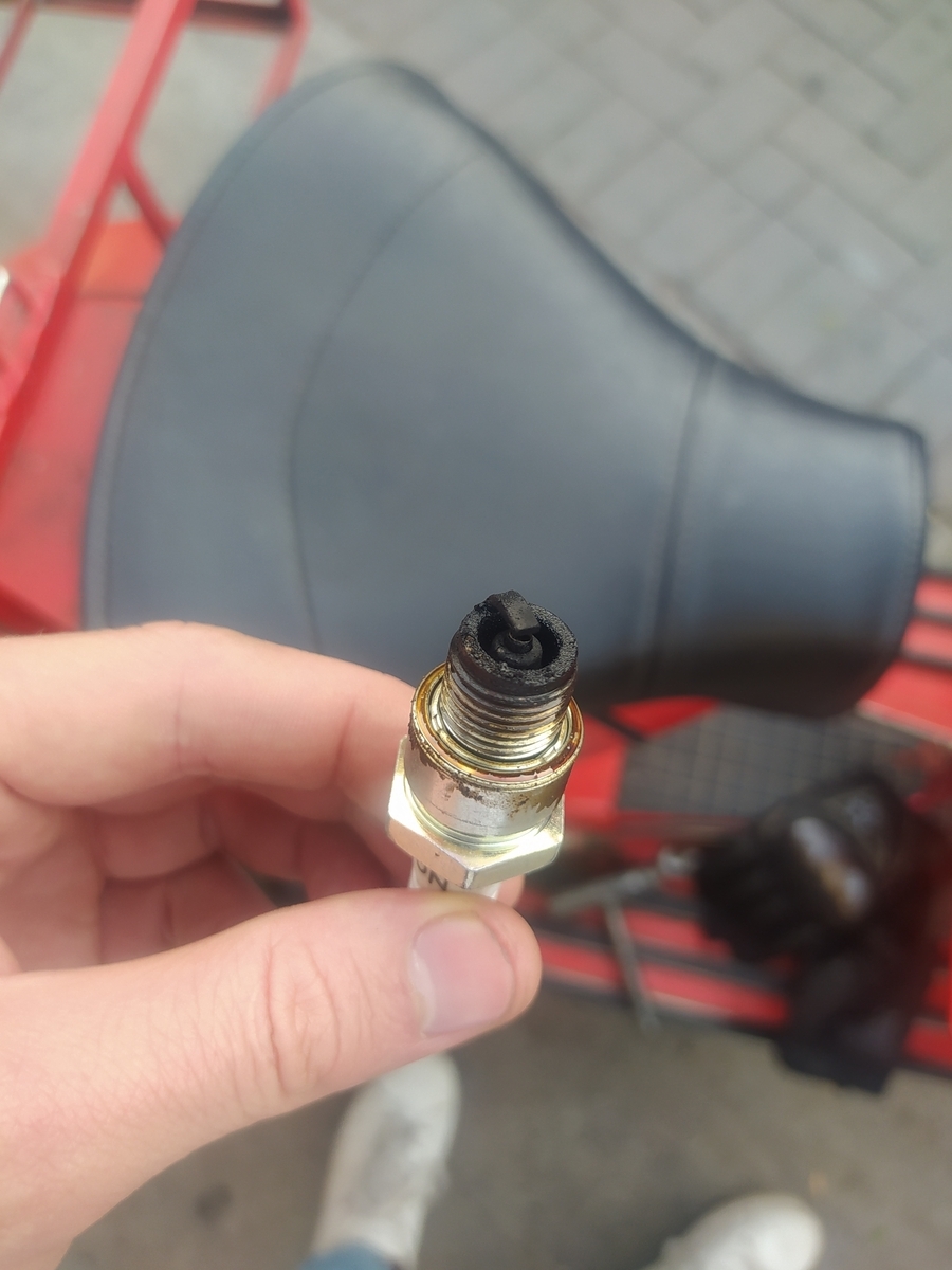 • Und jetzt ging mir mit dem 20er und gleicher Bedüsung in der Stadt beim Beschleunigen und Gashahn aufreißen der Bock einfach aus. Kerze rausgeschraubt und das (siehe Bilder) vorgefunden. Zur Erinnerung. Mit der Bedüsung kam beim 24er die Kerze gerade so braun raus.