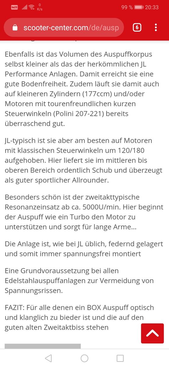Da ahnt man schon, daß dieser Auspuff für eine Leistungsentwicklung bei höheren Drehzahlen gedacht ist und analog dazu einen ziemlich großen Vergaser und eine entsprechend schärfere Kurbelwelle haben möchte...