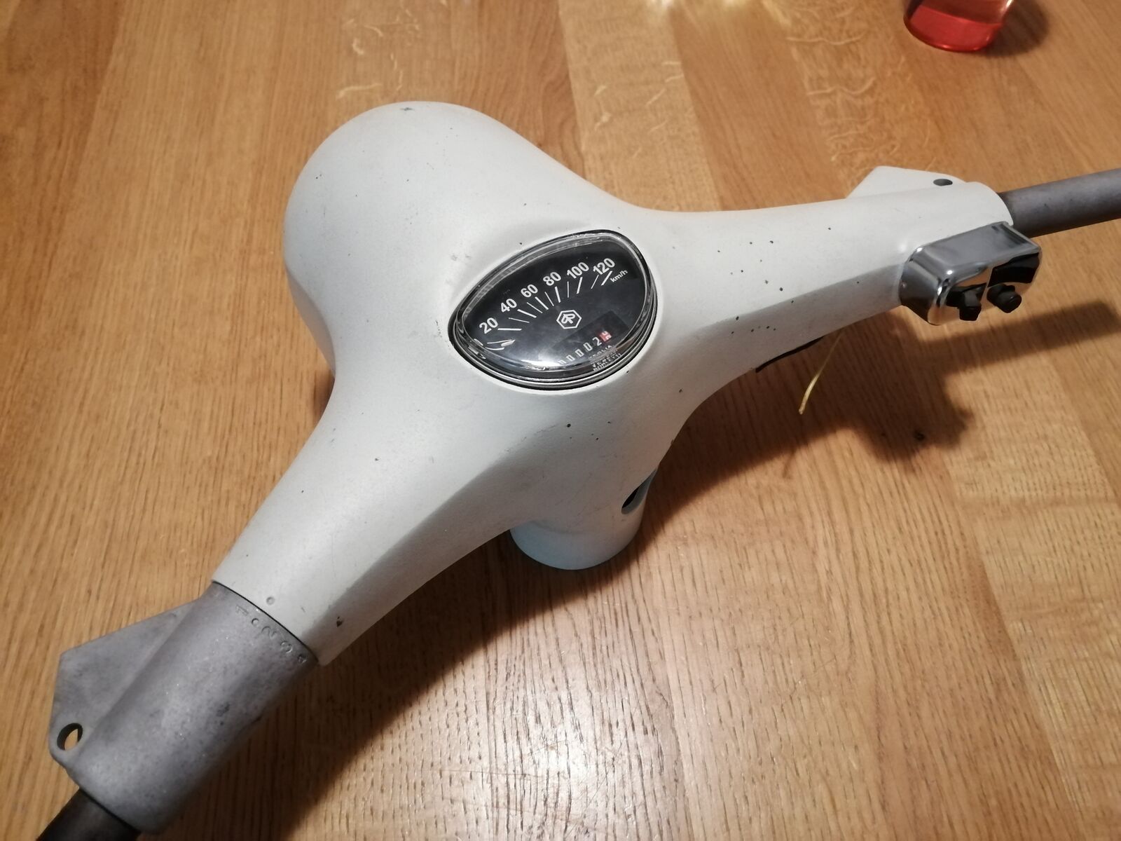 Schön, daß beide Auspüffe da nebeneinanderliegen...beim Originalauspuff sieht man den zu engen Minderleistungs-Auspuffkrümmer und die kleine Expansionskammer (in der die Auspuffwellenfront nur durh eine Prallplatte reflektiert wird) deutlich, und bei dem anderen einen fetten Krümmer mit konischem Megaphon, das in eine riesige Expansionskammer mit klassischem Gegenkonus übergeht.