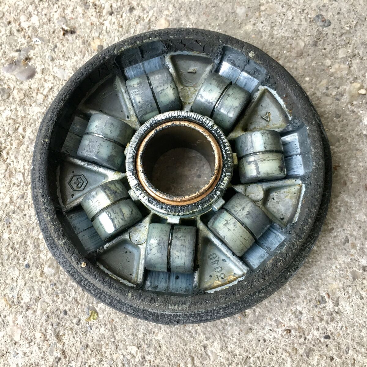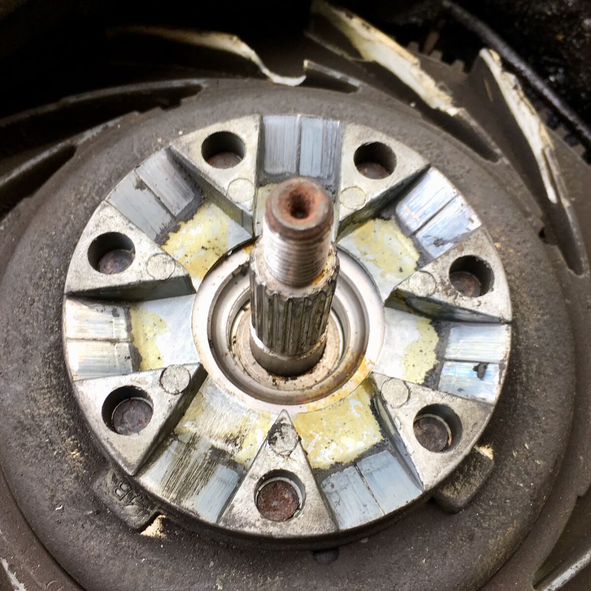 Moin - das Teil im Bild sitzt auf dem Lüfterrad. Es sieht so aus, als wenn die Rollen / Zylinder bei Drehgeschwindigkeit nach außen gehen, wie eine Art Fliehkraftkupplung. Aber die ist es ja nicht?! Was ist es dann?