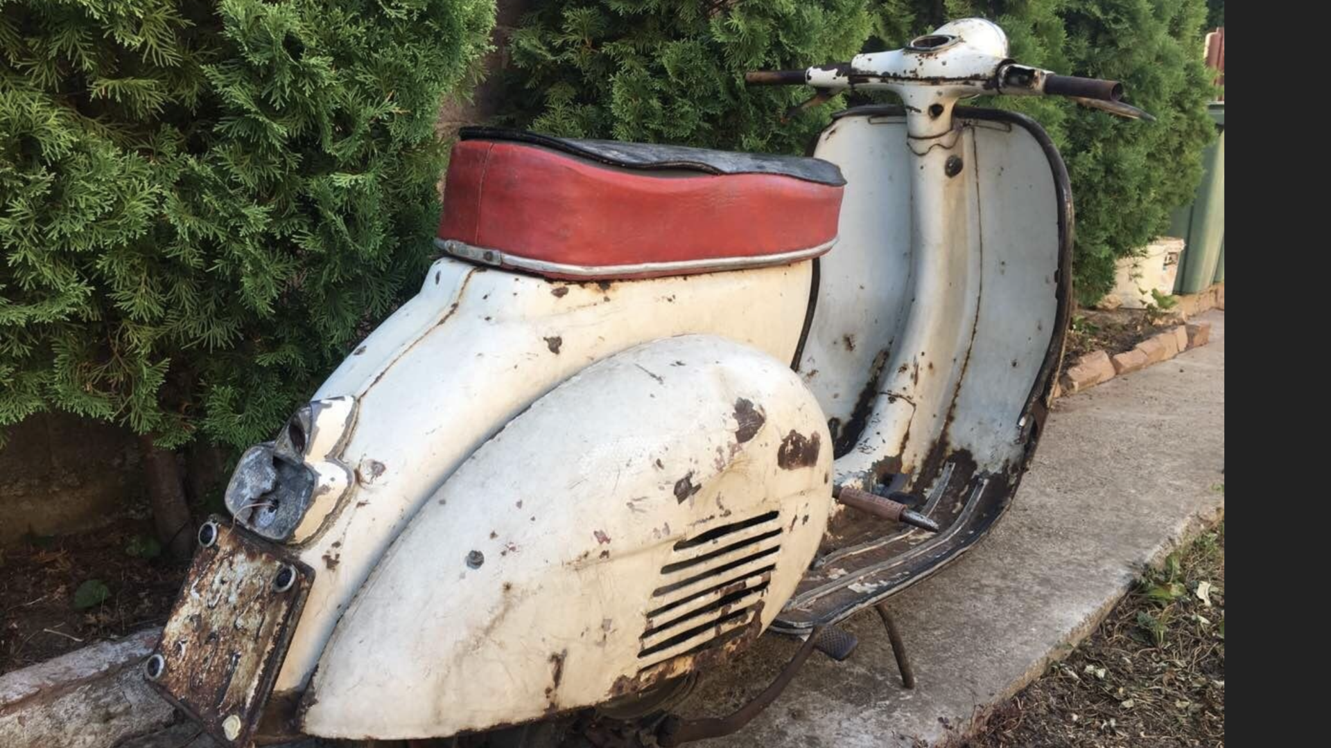 Diese alte Vespa wurde in einer Scheune gefunden.